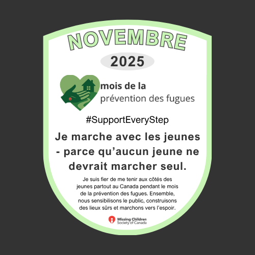Le mois de la prévention des fugues est une campagne nationale qui a lieu chaque novembre pour sensibiliser les gens aux expériences des jeunes fugueurs et à risque. Il se concentre sur la prévention, l’éducation et le soutien communautaire, tout en mettant en avant les ressources disponibles pour aider les jeunes à rester en sécurité et connectés.